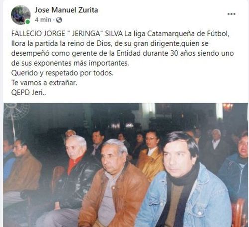 La noticia fue confirmada por José Manuel Zurita, actual presidente de la entidad. “La liga Catamarqueña de Fútbol, llora la partida al reino de Dios, de su gran dirigente”, publicó en un posteo en Facebook.