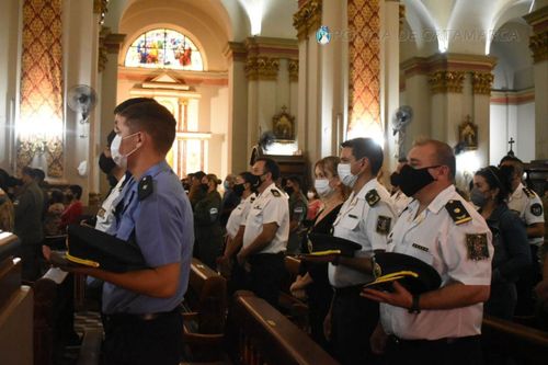 En la ceremonia religiosa realizada en la Catedral Basílica Nuestra Señora del Valle, participó el Ministro de Seguridad, Gustavo Aguirre acompañado por el Secretario de Seguridad, Martín Miranda, el Jefe de Policía de la Provincia, Ángel Ignacio Agüero, el Inspector General de Policía, Hugo Fabián Oliva, junto con autoridades del Ejército Argentino, de la Policía Federal, Gendarmería, del Servicio Penitenciario Provincial, integrantes de la Plana Mayor Policial, Oficiales Superiores, Jefes, Subalternos, Suboficiales, Agentes, Cadetes y Personal Administrativo de la Institución.