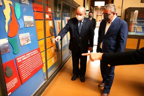 Tras la firma del acuerdo, las autoridades provinciales junto al presidente de la UNLP participaron de una recorrida por el Museo de La Plata.