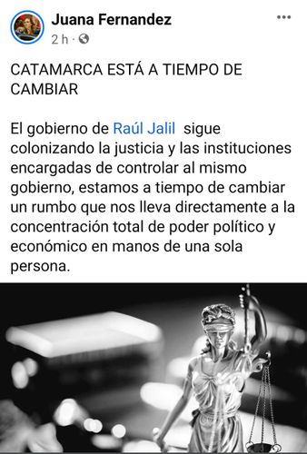 Por su parte, la diputada Juana Fernández (UCR) también cuestionó al Gobierno y sumó a la crítica las nominaciones a cumplir cargos en la Justicia. “El gobierno de Raúl Jalil sigue colonizando la justicia y las instituciones encargadas de controlar al mismo gobierno, estamos a tiempo de cambiar un rumbo que nos lleva directamente a la concentración total de poder político y económico en manos de una sola persona”, escribió en redes sociales.