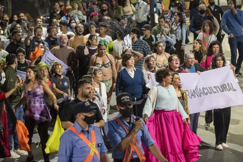 Trabajadores y gestores culturales independientes y del sector público, artistas de las distintas disciplinas artísticas, representantes de las instituciones nacionales culturales, legisladoras provinciales y funcionarios municipales y provinciales del ámbito cultural marcharon juntos para visibilizar la situación y manifestar su apoyo al proyecto de ley del diputado Pablo Carro -que se encuentra para tratamiento en la Cámara de Diputados de la Nación- y que aseguraría la protección de los fondos que se otorgan como asignación específica para el funcionamiento de instituciones vitales para la soberanía cultural como el Instituto Nacional del Teatro, el Instituto Nacional de Cine y Artes Audiovisuales, el Instituto Nacional de la Música, la CONABIP, el COMFER, entre otros.