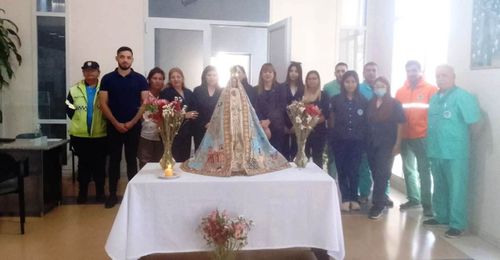 El padre Gustavo Flores, rector del Santuario mariano, reflexionó y elevó plegarias por todos los presentes, especialmente por quienes allí se desempeñan, y por el sistema de salud en la provincia.
